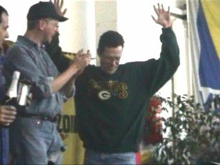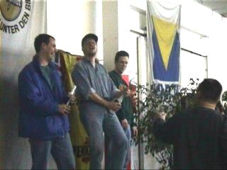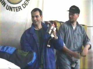 Auch bei der Rennaufstellung gibt es wieder ein Probleme mit einem Kart. Es bleibt sofort nach dem Losfahren wieder stehen, Totalausfall. Der Mechaniker drosselt schnelleres Kart, damit alle mitfahren können. Das dauert dann auch noch eine ganze Weile, so daß der Fahrer (ich will keine Namen nennen) recht ungehalten reagiert. Somit fängt das Rennen erst nach einer längeren an. |